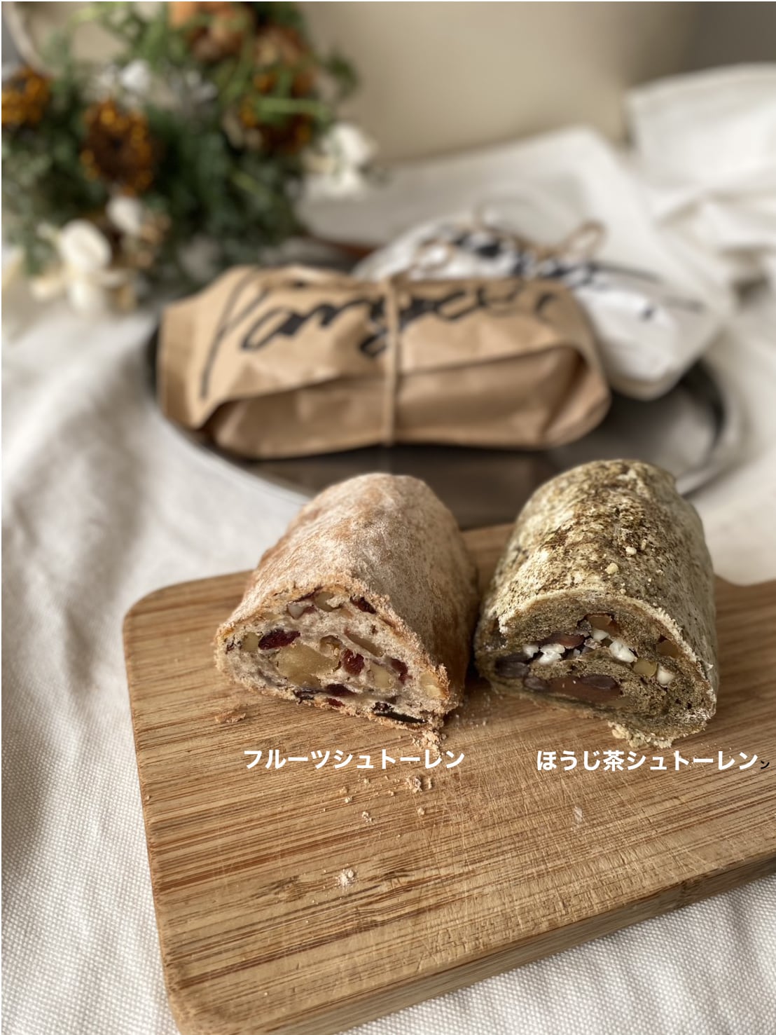 有機レーズン、有機クランベリー、セミドライ無花果、オレンジピール、胡桃、アーモンド、マジパン入りです